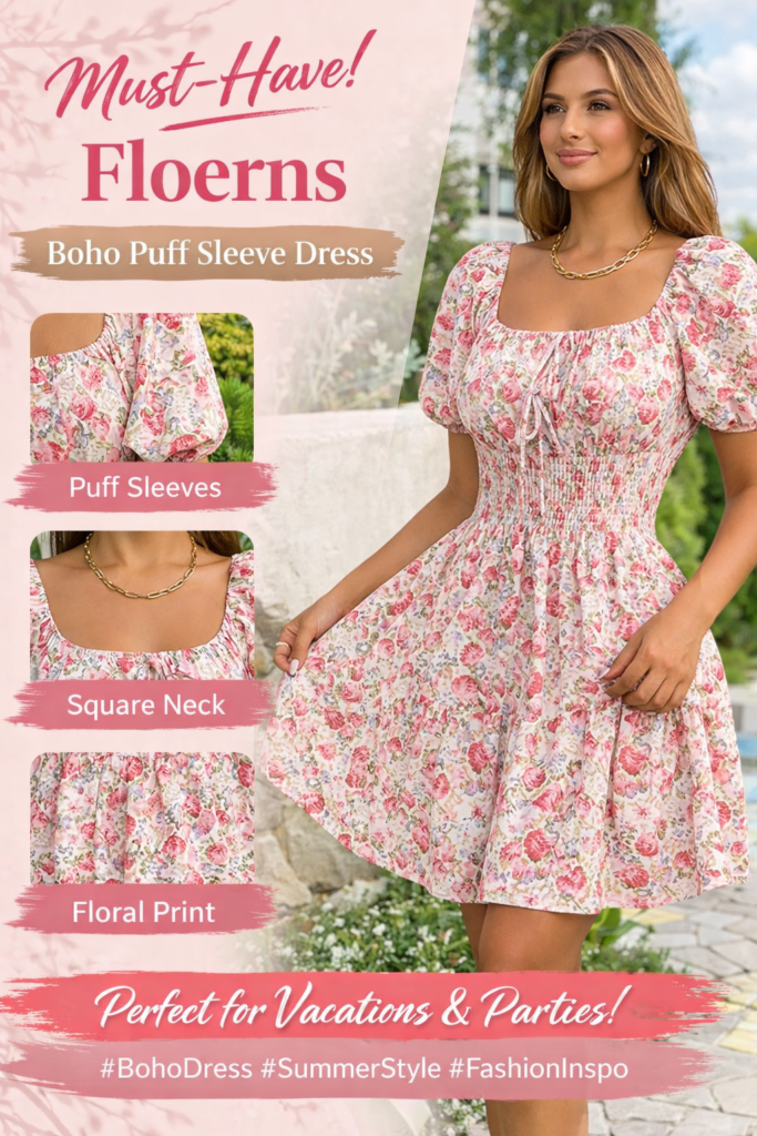 The Floerns Women’s Boho Square Neck Puff Sleeve Dress is more than just clothing — it’s a statement piece that brings out your personality. With its floral charm, flattering silhouette, and versatile styling options, it’s no surprise this dress is a top-selling item loved by women worldwide.